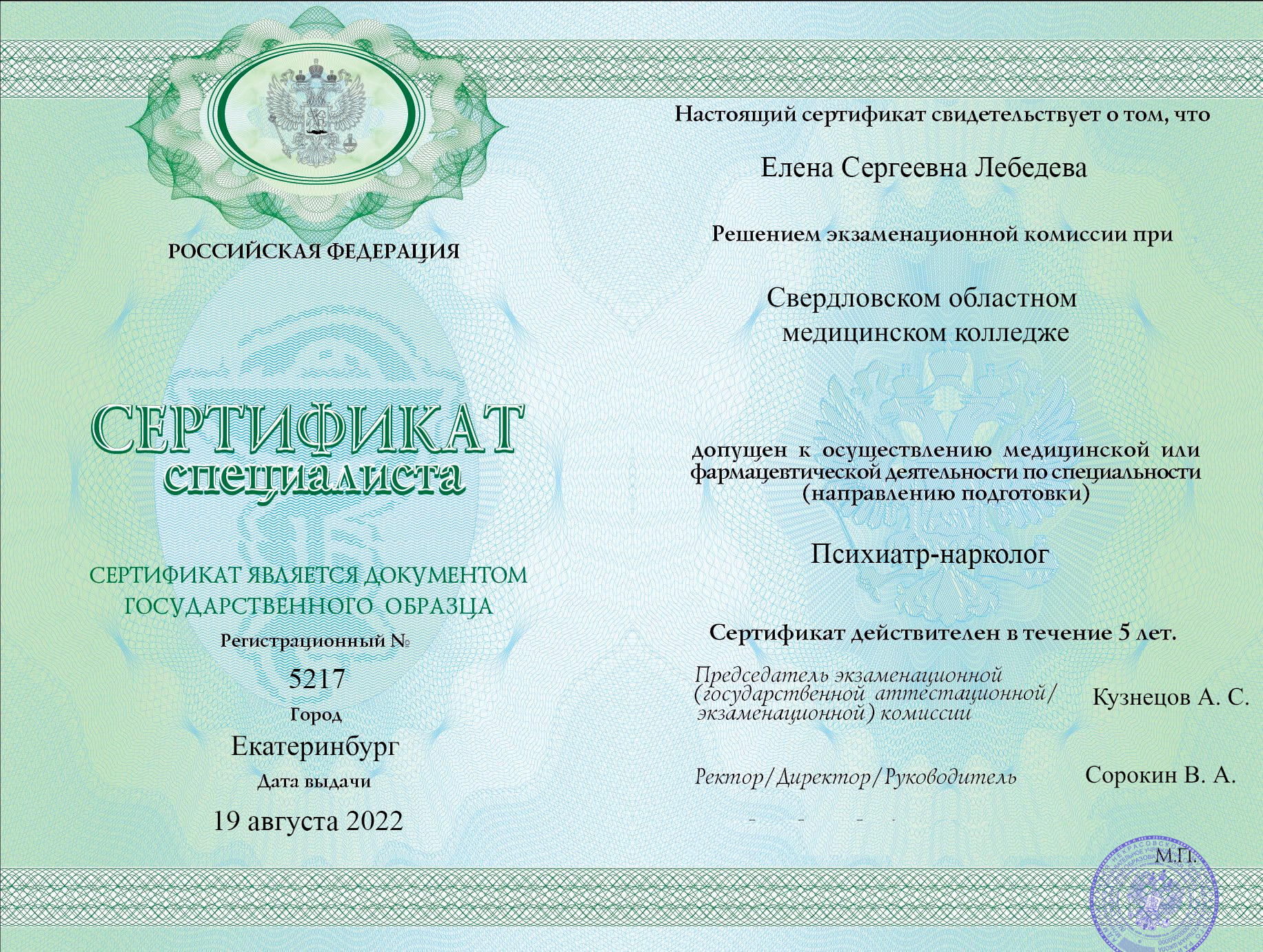 Елена Сергеевна Лебедева врач нарколог клиники доктора Стукаловой в Энгельсе